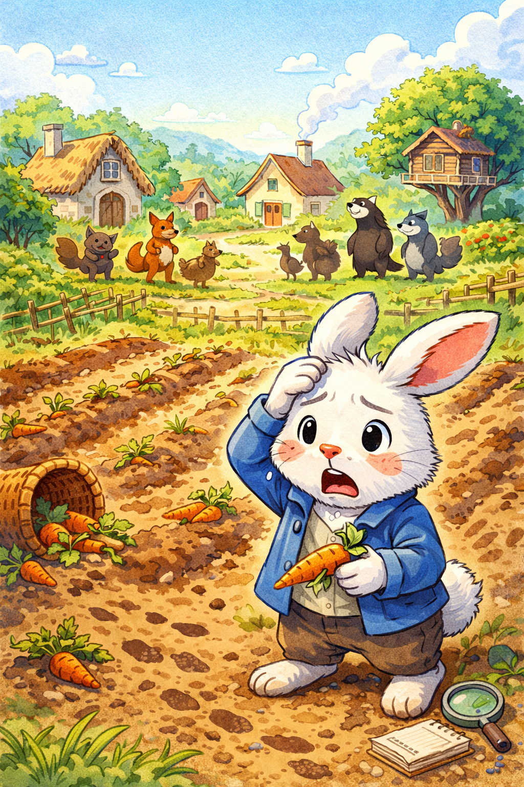 Jeannot Lapin découvre avec horreur que toutes ses carottes ont disparu ! Les enfants coopèrent pour découvrir le coupable.